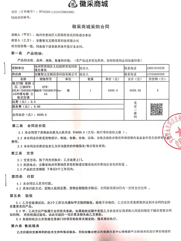 名稱: 杏花村街道分散采購訂立合同 文號: