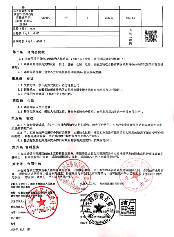 杏花村街道分散采購(gòu)訂立合同