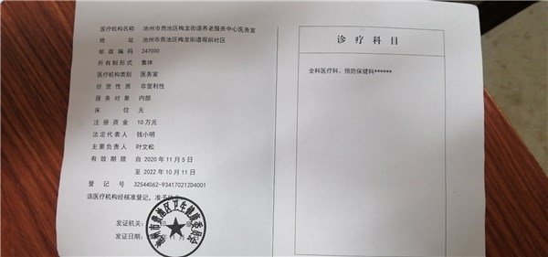 名稱: 【醫(yī)療許可】梅龍街道梅龍養(yǎng)老服務(wù)中心醫(yī)療機(jī)構(gòu)執(zhí)業(yè)許可 文號: