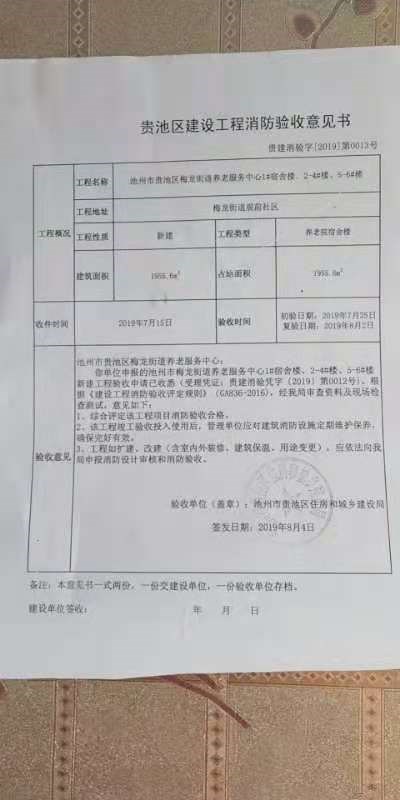 【消防安全合格證明】梅龍街道梅龍養(yǎng)老服務中心消防安全合格證明