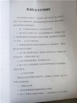 里山敬老院安全管理制度