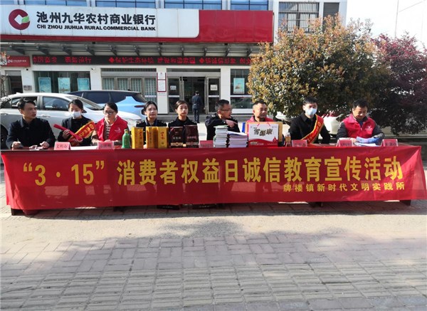 為擴(kuò)大消費(fèi)者權(quán)益保護(hù)宣傳,提振消費(fèi)信心,讓消費(fèi)者消費(fèi)體驗(yàn)更加美好,讓消費(fèi)者消費(fèi)過程更加放心,3月15日上午,貴池區(qū)牌樓鎮(zhèn)文明辦、應(yīng)急辦、食安辦等部門聯(lián)合梅村市場(chǎng)監(jiān)管所、九華農(nóng)商行在池州九華農(nóng)村商業(yè)銀行門口開展“3·15”消費(fèi)者權(quán)益日誠(chéng)信教育宣傳活動(dòng),活動(dòng)旨在營(yíng)造更加滿意的消費(fèi)環(huán)境,為貴池首善之區(qū)建設(shè)作出應(yīng)有貢獻(xiàn)。