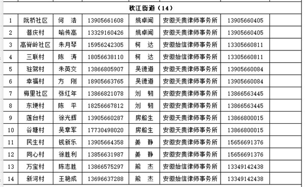 名稱: 秋江街道“一村一法律顧問”安排表 文號(hào):