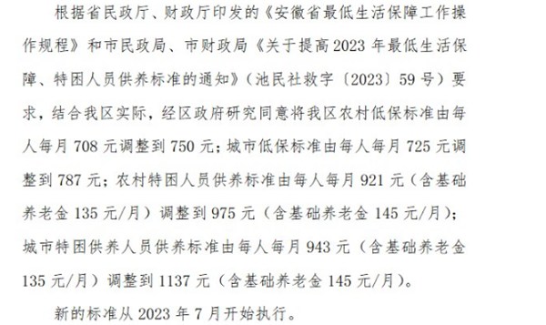 關(guān)于調(diào)整2023年貴池區(qū)最低生活保障和特困供養(yǎng)標準的通知