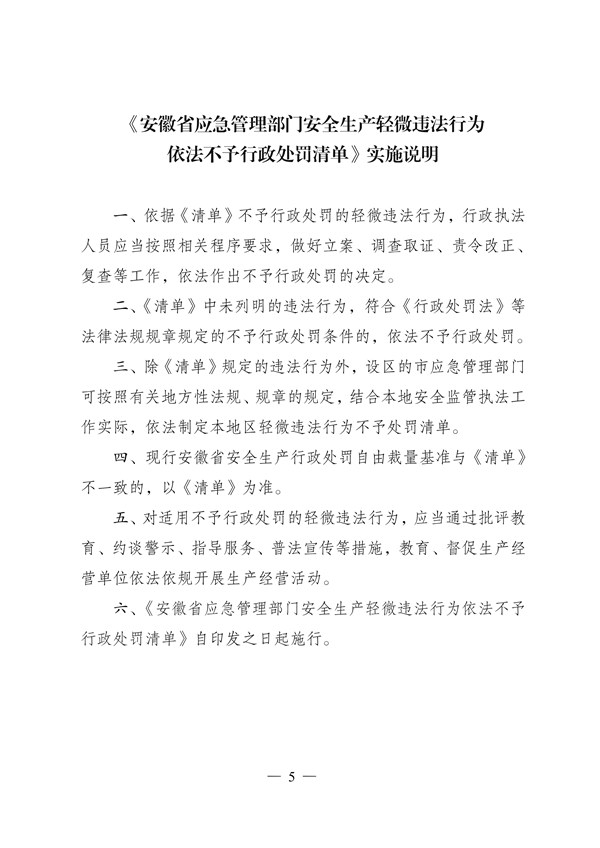 各市、縣(市、區(qū))應(yīng)急管理局,廳有關(guān)處室: 現(xiàn)將《安徽省應(yīng)急管理部門安全生產(chǎn)輕微違法行為依法不予 行政處罰清單》及實(shí)施說(shuō)明印發(fā)給你們,請(qǐng)認(rèn)真貫徹執(zhí)行。