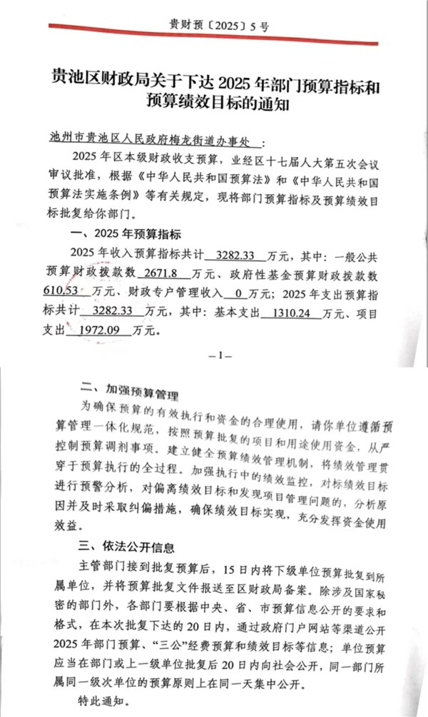 | 名稱(chēng): | 貴池區(qū)財(cái)政局關(guān)于下達(dá)2025年部門(mén)預(yù)算指標(biāo)和預(yù)算績(jī)效目標(biāo)的通知 | 文號(hào): | 貴財(cái)預(yù)〔2025〕5號(hào) |
