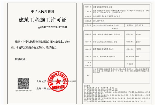 | 名稱: | 安徽省貴航特鋼有限公司燒結(jié)技術(shù)改造項(xiàng)目(一期)2#-1號(hào)轉(zhuǎn)運(yùn)站、2#除鐵器室、2#篩分配電室、2#燒冷變電所 《建筑工程施工許可證》批后公布 | 文號(hào): | 無 |