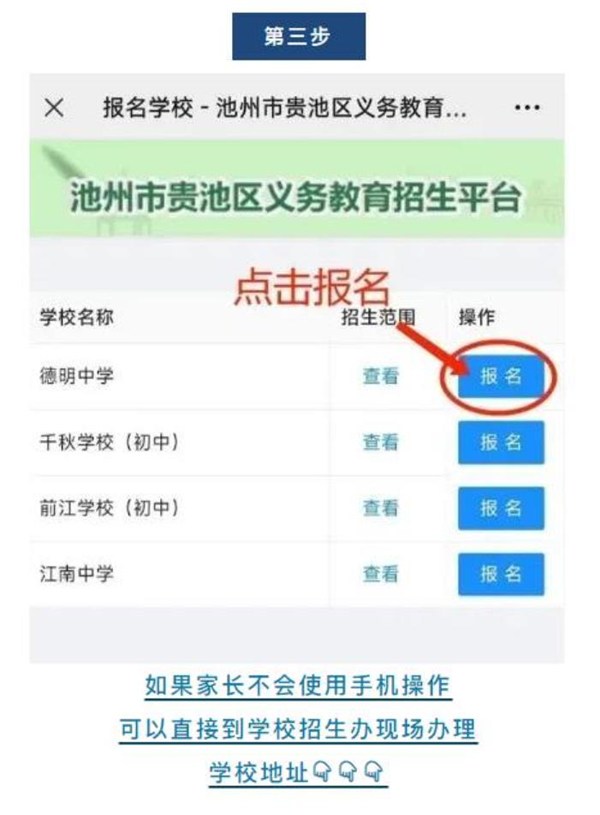 5月 21 至 5 月 31 日 報 名 ,家 長 通 過“皖 事 通”APP或 手 機 微信掃二維碼登錄“貴 池 區(qū) 義 務 教 育 招 生 平 臺”報 名 。材 料 審 核 和 錄