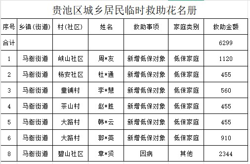 馬衙街道2025年5月臨時(shí)救助匯總表