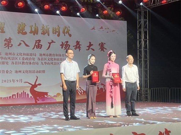 9月27日晚,2025年池州市第八屆廣場(chǎng)舞大賽在濕地公園舉辦,并傳來(lái)捷報(bào):由貴池區(qū)文化和旅游局選送、貴池區(qū)文化館嶼花藝術(shù)團(tuán)演出的廣場(chǎng)舞《杏花春雨》獲得98.12的全場(chǎng)最高分,榮獲此次大賽一等獎(jiǎng)。