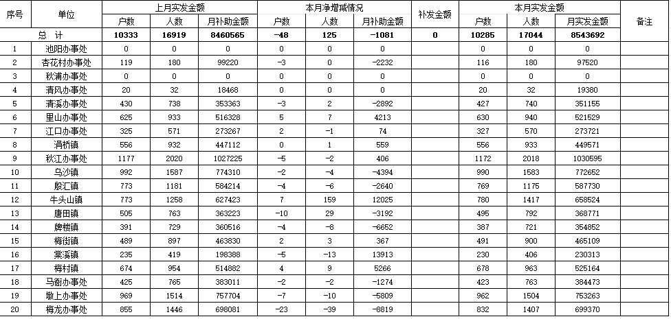 貴池區(qū)2025年10月份農(nóng)村低保匯總表
