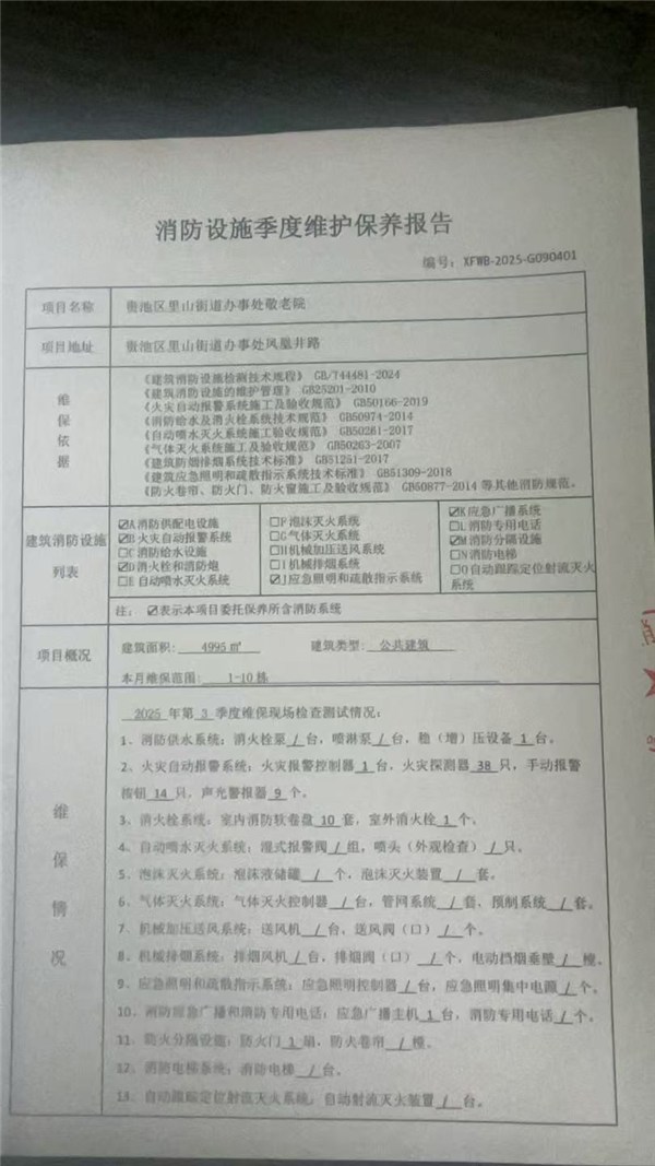 里山街道敬老院建筑消防設施月度維保報告(2025年9月)