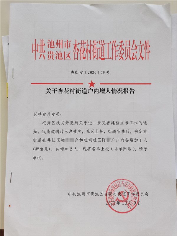 名稱: 杏花村街道2020年第三季度貧困退出及新增情況 文號: