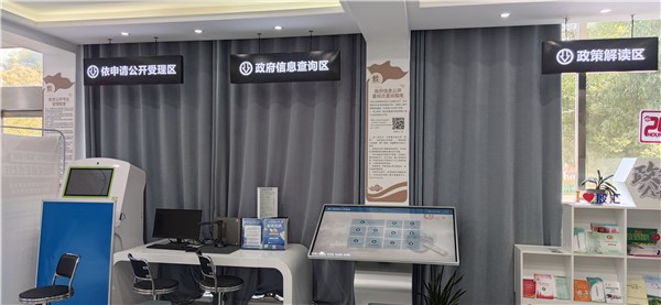 專區(qū)包括政府信息查詢,依申請公開受理區(qū)、辦事服務(wù)咨詢等基礎(chǔ)功能,并結(jié)合本地實際設(shè)計政策解讀咨詢、公眾意見征集區(qū)、等候休息等功能。