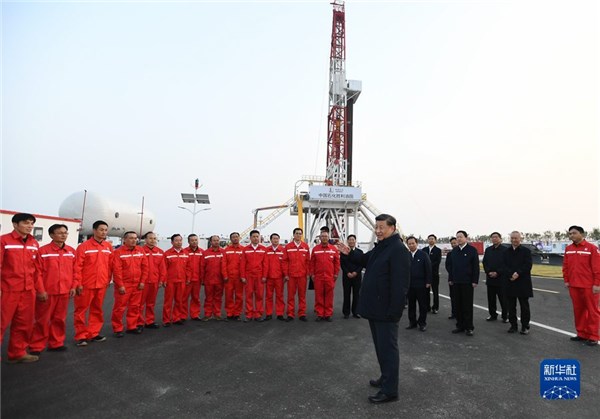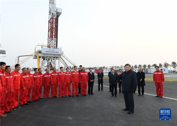 離開研究院,習(xí)近平來到位于東營市萊州灣的勝利油田萊113區(qū)塊,了解二氧化碳捕集、利用與封存技術(shù)研發(fā)應(yīng)用情況。他登上二層鉆井平臺,察看鉆井自動化設(shè)備,走進操作室,同正在作業(yè)的工人親切交流。今年是勝利油田發(fā)現(xiàn)60周年。習(xí)近平代表黨中央向為我國能源事業(yè)作出貢獻的石油工作者們表示崇高敬意。習(xí)近平叮囑大家繼承和發(fā)揚老一輩石油人的革命精神和優(yōu)良傳統(tǒng),始終保持石油人的紅色底蘊和戰(zhàn)斗情懷,為社會主義現(xiàn)代化建設(shè)事業(yè)作出更大貢獻。