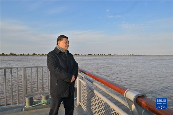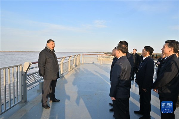 10月22日下午,中共中央總書記、國家主席、中央軍委主席習(xí)近平在山東省濟南市主持召開深入推動黃河流域生態(tài)保護和高質(zhì)量發(fā)展座談會并發(fā)表重要講話。這是座談會前,習(xí)近平20日下午在東營市黃河入??诳疾?。 新華社記者 謝環(huán)馳 攝