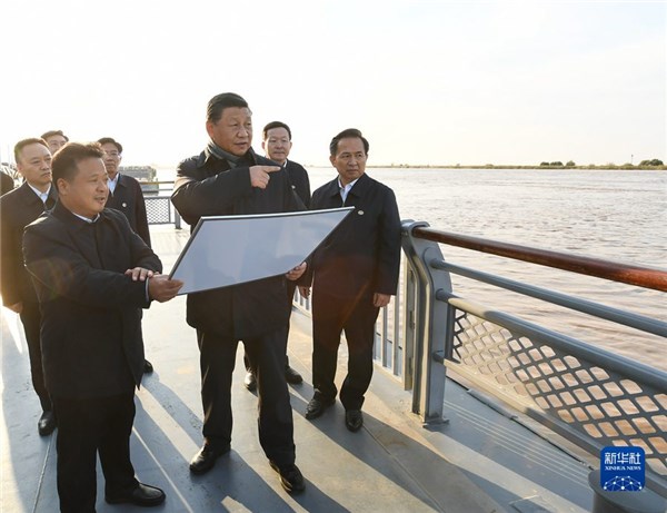 10月22日下午,中共中央總書記、國家主席、中央軍委主席習(xí)近平在山東省濟南市主持召開深入推動黃河流域生態(tài)保護和高質(zhì)量發(fā)展座談會并發(fā)表重要講話。這是座談會前,習(xí)近平20日下午在東營市黃河入??诳疾臁?新華社記者 王曄 攝