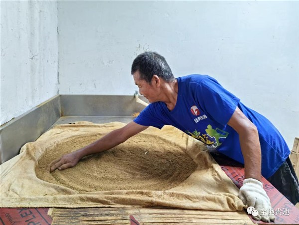 “這些工序看著簡(jiǎn)單,但實(shí)際上沒些功夫可不行,就說這炒籽,火候稍有偏差就會(huì)影響出油率和油的成色,炒得太嫩,油不香,炒得太老,出油率低?!背弥鴦偝闯龅牟俗牙鋮s的工夫,工人章珍犬向筆者介紹道。今年62歲的章珍犬從20歲開始便跟著師傅后面學(xué)習(xí)木榨油技藝,在那個(gè)沒有機(jī)械的年代,傳統(tǒng)木榨是人們加工食用油唯一的方法。但隨著時(shí)代的發(fā)展,機(jī)器榨油逐漸興起,傳統(tǒng)木榨已漸行漸遠(yuǎn),見證了木榨技藝興衰更迭的章珍犬也多年未曾從事這一行業(yè)了?!按謇镆剞k老油坊,找到我之后我立馬就答應(yīng)‘重操舊業(yè)’了,這一行是個(gè)苦力活,但我想把這古法榨油的技藝傳承下去?!闭抡淙f。