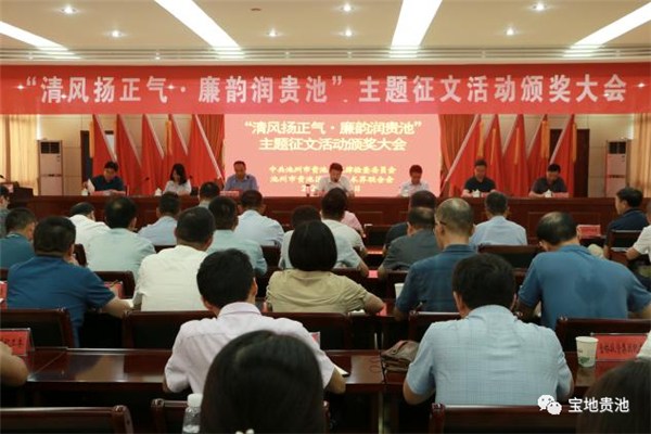 7月27日,貴池區(qū)“清風(fēng)揚(yáng)正氣·廉韻潤(rùn)貴池”主題征文活動(dòng)頒獎(jiǎng)大會(huì)舉辦。區(qū)委常委、區(qū)紀(jì)委書(shū)記、區(qū)監(jiān)委代主任王陽(yáng)明,區(qū)委常委、宣傳部部長(zhǎng)黃秋龍出席頒獎(jiǎng)儀式并為獲獎(jiǎng)?wù)哳C獎(jiǎng)。