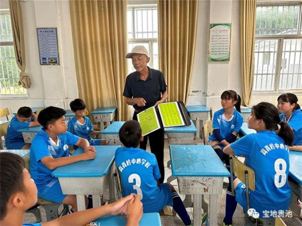 “保持隊形!跑起來!穩(wěn)住往前帶,很好!傳球!射門……”盛夏時節(jié),高脊嶺中心學校操場上,一場激烈的足球比賽正在進行。20多個孩子追逐著足球,吶喊聲、口哨聲與歡笑聲在校園里交織回響,忽遠忽近。操場邊,一個瘦瘦高高的男子時而“捶胸頓足”,時而扶腰立定,目不轉(zhuǎn)睛地看著操場上飛奔的孩子們。