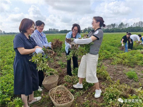 為慶祝第六個(gè)中國農(nóng)民豐收節(jié),沉浸式體驗(yàn)豐收的喜悅,9月16日,池州市婦聯(lián)、貴池區(qū)婦聯(lián)、烏沙鎮(zhèn)人民政府、清風(fēng)街道翠百社區(qū)在烏沙鎮(zhèn)聯(lián)合組織開展“慶豐收促和美 巾幗助農(nóng)行動(dòng)”小花生采摘活動(dòng)。區(qū)人大常委會(huì)副主任程菲菲、區(qū)政協(xié)副主席吳淞同廣大干群一道參加采摘活動(dòng)。
