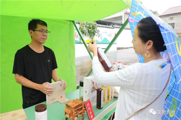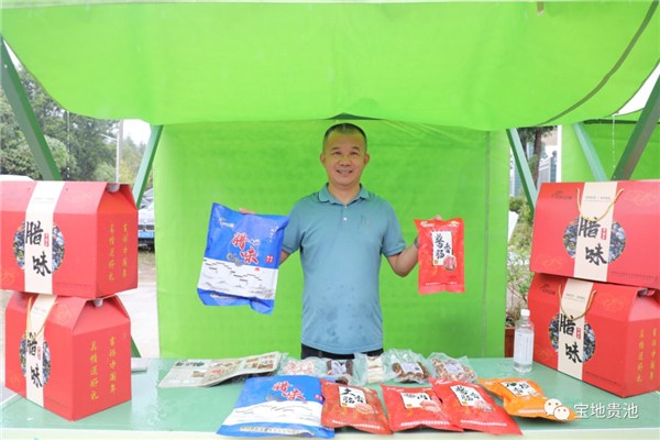 除了葡萄、蓮子、生姜,推介會(huì)現(xiàn)場(chǎng)還集中展示了產(chǎn)自步嶺村的木榨芝麻油(菜籽油)、茶油、茭白、皖南土雞蛋、特色風(fēng)干鯽魚、手工和一批精深加工過(guò)的醬肉、臘雞、筍干、黑木耳等品類豐富的特色農(nóng)產(chǎn)品和手工藝產(chǎn)品。天空雖然下著小雨,但現(xiàn)場(chǎng)人氣滿滿,處處洋溢著熱鬧的氛圍,各展位上的工作人員熱情地招待著觀展的游客和村民,向大家詳細(xì)介紹各自農(nóng)產(chǎn)品的生產(chǎn)制作流程和特色。“剛剛看到這邊的茶油,感覺(jué)很不錯(cuò),之前沒(méi)有見(jiàn)過(guò),正打算買一瓶回去試試看?!眮?lái)自主城區(qū)的周阿姨在展位上逛了一圈后笑著說(shuō)道。