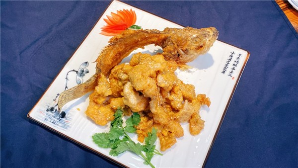 將新鮮鱖魚(yú)洗凈、切片、掛糊,油溫4成熱下鍋炸制金黃撈出;鍋內(nèi)留油下咸蛋黃搗散,下入魚(yú)片翻勻盛盤(pán)即可,色香味俱佳。