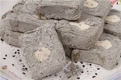 唐田方片糕以優(yōu)質(zhì)糯米為主要原料,配以白砂糖、糯米粉、芝麻粉、紅綠絲、桔餅、桂花。唐田方片糕色白如玉,質(zhì)地柔軟,薄如紙片,香甜適度,酥松可口。