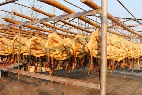 阮橋板鴨采用傳統(tǒng)配方純手工制作,經(jīng)過十二道工序加工而成,風味獨特。成品板鴨具有“干、板、酥、香”的特點,其外觀金黃飽滿,肉質(zhì)細嫩緊密,蒸、煮、煲后食之,感覺肥而不膩,松嫩可口,咸淡適中、香鮮味美。