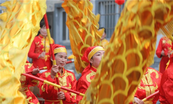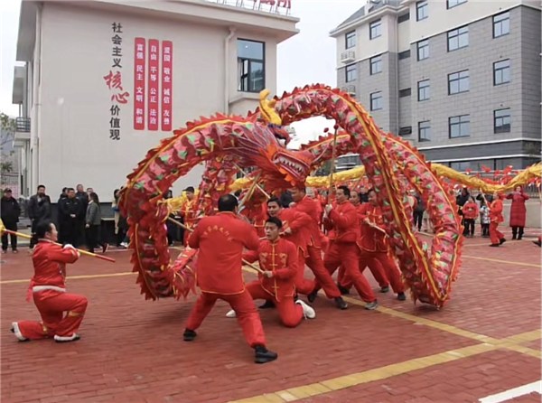 “春節(jié)舞龍燈是長輩們留下來的傳統(tǒng),目的是祈求來年五谷豐登,國泰民安。幾個月前我們就開始排練,一方面想將這項傳統(tǒng)文化繼續(xù)傳承下去,增加年味,留住鄉(xiāng)愁;另一方面在排練的同時有助于鍛煉身體,發(fā)揚體育文化精神。”殷匯鎮(zhèn)綜合文化站文化協(xié)管員胡孟英笑著介紹說,令她感到開心的是,如今,越來越多的年輕人也對民俗文化感興趣,今年他們準備走遍殷匯鎮(zhèn)的所有村和社區(qū),讓鄉(xiāng)親們感受紅紅火火過大年的氣氛,也讓更多人了解這項傳統(tǒng)技藝。