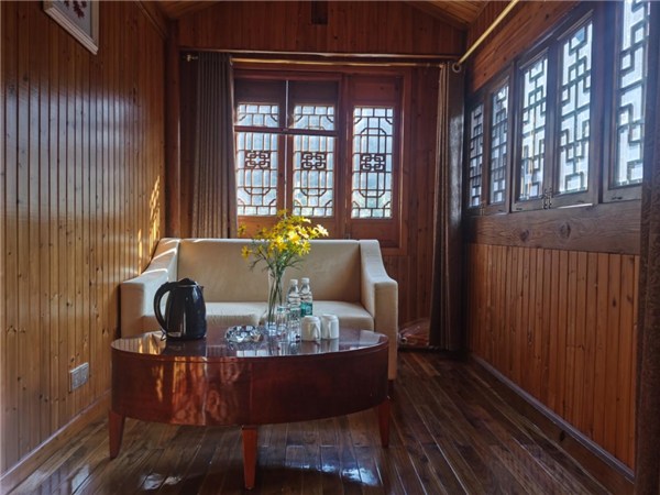 民宿內(nèi)多是木質(zhì)結(jié)構(gòu),徽韻十足,二樓臥室旁還配有休閑茶室,泡上一壺清茶,陽光透窗而入,談笑之間時光流轉(zhuǎn),愜意非常。
