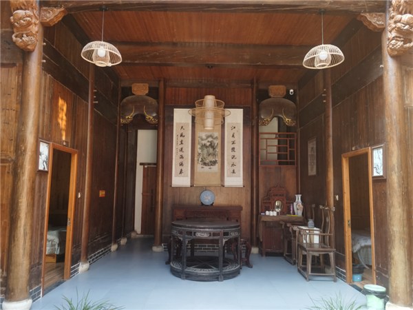 瑯山古寨休閑農(nóng)莊整體建筑風(fēng)格以徽派為主,目前建成的三幢民宿已有兩幢裝修完成并投入使用,其中一幢住宅是老板從黃山歙縣購買,將粱、柱編號,請了老工匠,在這里進(jìn)行組裝重建,清中期的老物件,距今已有幾百年的歷史。