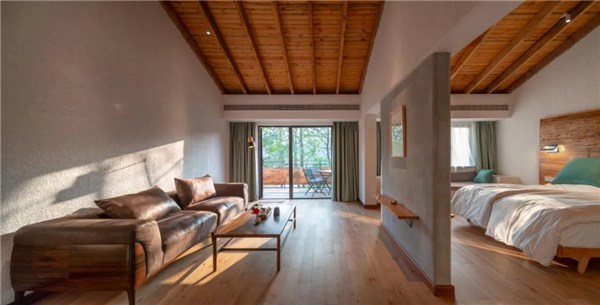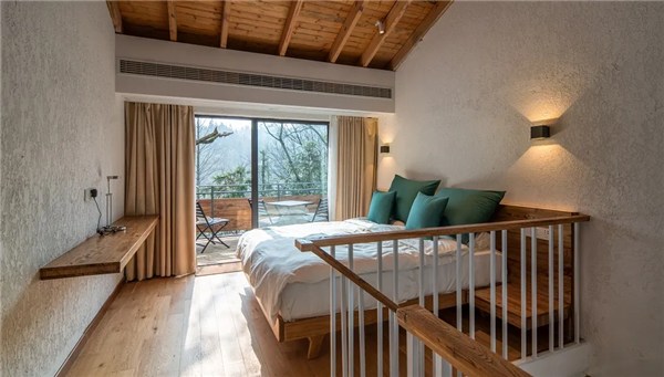這座民宿的建造歷時(shí)4年,總占地7.7畝,共有各式套房16間。這里被晨霧、鳥鳴、流水、鮮花所環(huán)繞,讓人忍不住雀躍,而又不自覺(jué)沉浸其中。仙居的客房都有露天景觀陽(yáng)臺(tái),被山野溫暖懷抱。每個(gè)房間都與自然360°融合,每個(gè)細(xì)節(jié)都力圖做到極致。