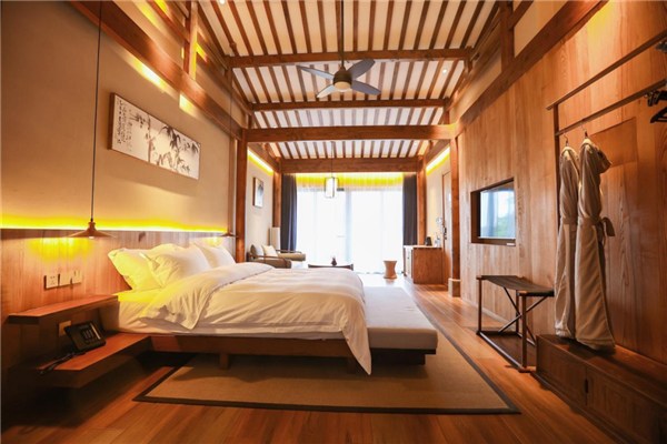 山水間·醉里頭位于市區(qū)杏花村古井文化園內,整個民宿建筑面積有700平方米,融合了很多極具江南特色的元素,14間客房每一間房型都各具特色。房間里是大大的落地窗,寬敞明亮,在這里整體都是原木和白墻的元素,簡約又高級。