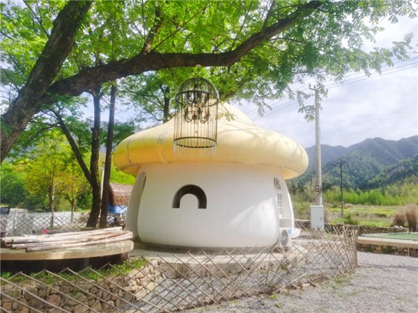 一走進(jìn)梅街鎮(zhèn)源溪村,一個個造型新穎的小屋映入眼簾,有帳篷、蘑菇屋、玻璃房、小車房......給這個優(yōu)美靜謐的山村增添了一份活力。