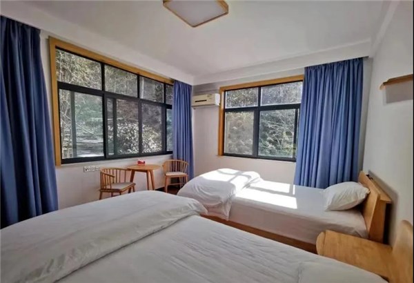 民宿靠山而建,周邊景色隨四季而變,落地窗設(shè)計(jì)將綿綿青山收入懷抱。有山景房、庭院房等各種房型共26間,親子、家庭或情侶出游都很方便,同時(shí)也承接公司會議、團(tuán)建等活動(dòng)。餐飲以徽菜及當(dāng)?shù)剞r(nóng)家土菜為主,以當(dāng)?shù)貎?yōu)質(zhì)生態(tài)天然食材為原料,可為旅客提供健康可口的飯菜。