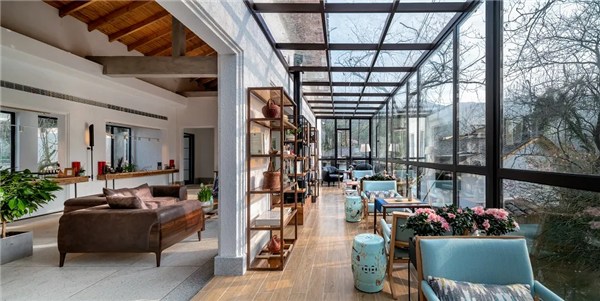 秋浦仙居總占地7.7畝,共有各式套房11間。民宿采用極簡的設(shè)計(jì)風(fēng)格,在一定程度上保留了老宅子的屋架結(jié)構(gòu),多以怪石、綠樹、水池還有看似漫不經(jīng)心實(shí)則精心搭配的各色花卉植物裝飾,將這個(gè)錯(cuò)落有致的小院子裝點(diǎn)得如詩如畫,不論春夏秋冬這里都是景色宜人。