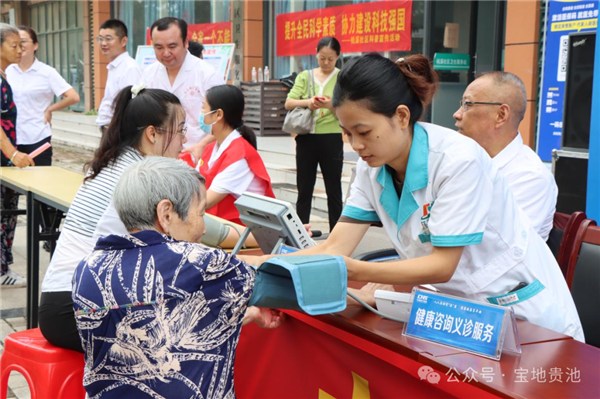 “大爺,您這個血壓有些高了,生活中一定要多多注意!不放心的話可以再去做些詳細的檢查……”在另一邊的健康咨詢義診服務(wù)臺前,醫(yī)護人員為居民免費測量血壓、檢查眼睛等,并根據(jù)實際情況提供相關(guān)就診建議。