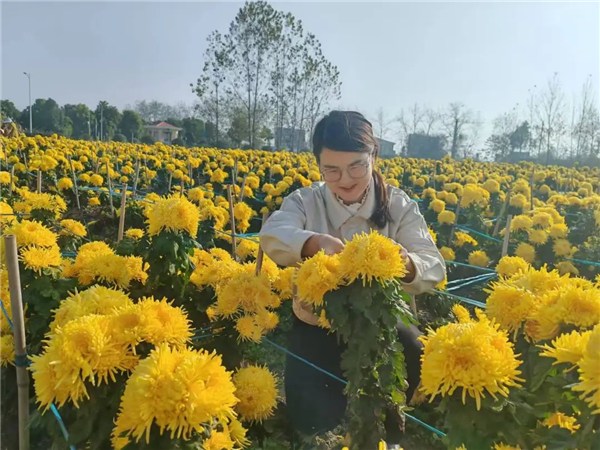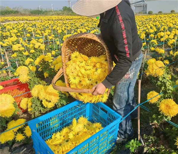 “我們基地以土地流轉(zhuǎn)、村民務(wù)工等方式幫助群眾增加收入。同時,菊花采摘期用工量增加了不少,平均每天需要20余人前來采摘,高峰期達到40余人,整個花期發(fā)放工資達到20萬元左右。看著帶動了本村農(nóng)戶增收,我們都從心底里高興?!被刎撠?zé)人方學(xué)敏一臉喜悅地說道。