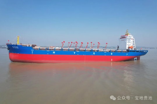 “宏永藍(lán)天”輪為基地首艘外國籍集裝箱船,由池州市中海船舶修造有限公司建造,于2024年1月交付。該船總長153.8米、型寬25.3米、型深13.4米,載重噸位24000噸。
