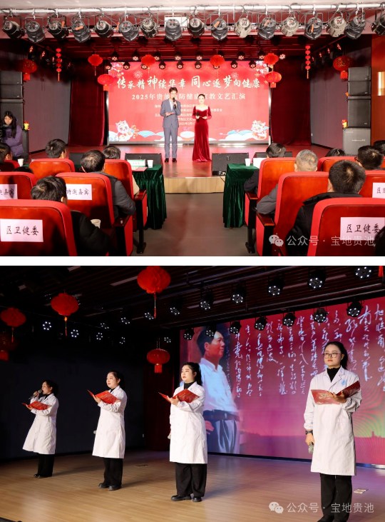 2月12日,“傳承精神續(xù)華章,同心逐夢向健康”2025年貴池血防健康宣教文藝匯演在貴池區(qū)新時代文明實踐中心舉辦。此次匯演巧妙地將血吸蟲病防治宣傳融入群眾喜聞樂見的文藝形式中,增添了獨特的健康宣傳色彩。區(qū)委常委、副區(qū)長汪賽榮,區(qū)委常委、宣傳部部長黃秋龍,副區(qū)長胡燦熔、宋婷與眾多市民一道觀看了演出。