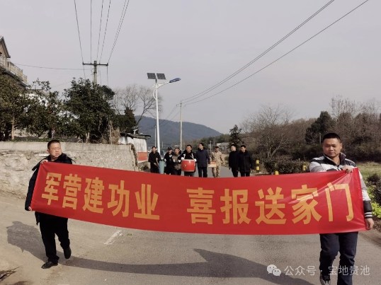 少年立志、軍營建功、一張喜報、全家光榮。連日來,唐田鎮(zhèn)和平村鑼鼓喧天、紅綢飄揚,區(qū)人武部、區(qū)退役軍人事務局與唐田鎮(zhèn)退役軍人服務站接連為榮立三等功、“三級表彰”軍事技能標兵的三個現役軍人家庭送上喜報。
