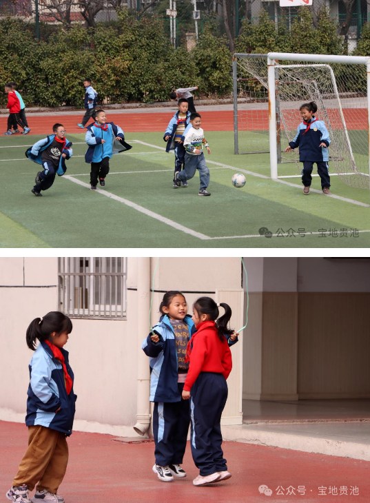 “楊校長好!”走在活動區(qū),孩子們紛紛揚(yáng)起笑臉、揮手問好,楊志美的臉上也滿是欣慰的笑容。潛潤樓前的廣場上,學(xué)生們?nèi)宄扇?,扔沙包、跳方格、老鷹捉小雞等趣味活動應(yīng)接不暇;潤園廣場上則充滿了動感氣息,羽毛球、跳繩、踢毽子……童年在嘴角的笑容中熠熠生輝;操場則是大孩子們的“天下”,一支支足球、籃球等隊伍訓(xùn)練有素,肆意奔跑洋溢青春力量?!澳軌虮M情玩耍實在是太好啦,感覺上課的時候更能集中注意力了!”4年級3班學(xué)生程諾說道。