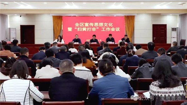 3月21日,2025年全區(qū)宣傳思想文化暨“掃黃打非”工作會議召開。市委常委、區(qū)委書記馬勝利專門作出批示,充分肯定過去一年全區(qū)宣傳思想文化工作成效,對做好新一年工作寄予厚望、提出要求。區(qū)委常委、宣傳部部長黃秋龍出席會議并講話。區(qū)政府副區(qū)長何金華主持會議。