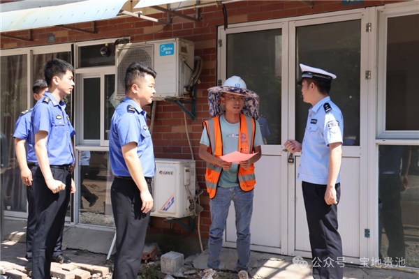 當天的檢查深入住宅小區(qū)、各建筑工地等建筑垃圾產(chǎn)生源頭,每到一處,都以“剛?cè)岵钡膱?zhí)法模式開展工作,既守住法律底線,又傳遞管理溫度。在主城區(qū)新城明珠小區(qū)排水防澇工程施工現(xiàn)場,身著制服的執(zhí)法人員正在對進入小區(qū)的運輸車輛進行“全身體檢”,仔細檢查車輛運輸資質(zhì)是否合法、密閉措施是否到位、行駛路線是否合規(guī)。在杏花村街道洋浦小區(qū)老舊小區(qū)改造工地,執(zhí)法人員指著百米外的學校標識提醒項目負責人:“上下學時段必須安排安全員值守,運輸車輛盡量避開高峰期。”在水電八局池州市人民醫(yī)院地下停車場項目工地,執(zhí)法人員一一檢查項目現(xiàn)場霧炮機、噴淋系統(tǒng)等揚塵處理設施運行情況……