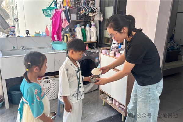 “阿姨,能捐一勺米嗎?我們要包百家粽送溫暖!”活動當(dāng)天,社區(qū)小朋友們化身“敲門小使者”,挨家挨戶輕叩鄰里的門,收獲了居民們一次次的支持。“原來一勺米也能變成一座米山。”李晟希小朋友捧著沉甸甸的米盆高興地說。