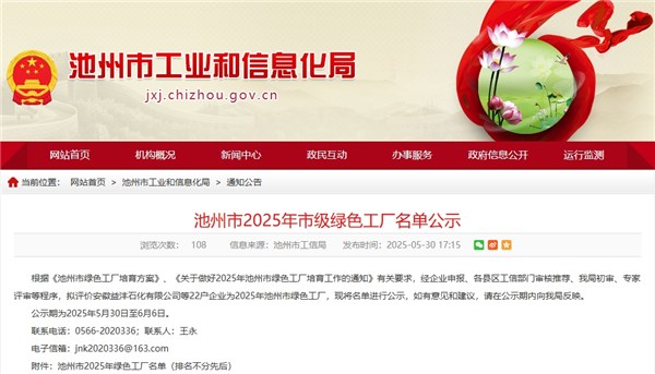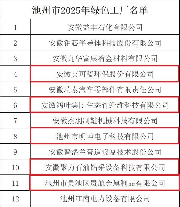 池州高新區(qū)新增5家企業(yè)入選《池州市2025年市級綠色工廠名單公示》