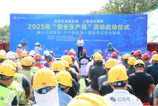 6月6日,由區(qū)住建局主辦的貴池區(qū)住建系統(tǒng)、上海寶冶鋼構(gòu)2025年安全生產(chǎn)月啟動儀式暨企業(yè)開放日在上海寶冶安徽烏沙船舶工業(yè)基地加工區(qū)搬遷EPC項目現(xiàn)場舉辦。