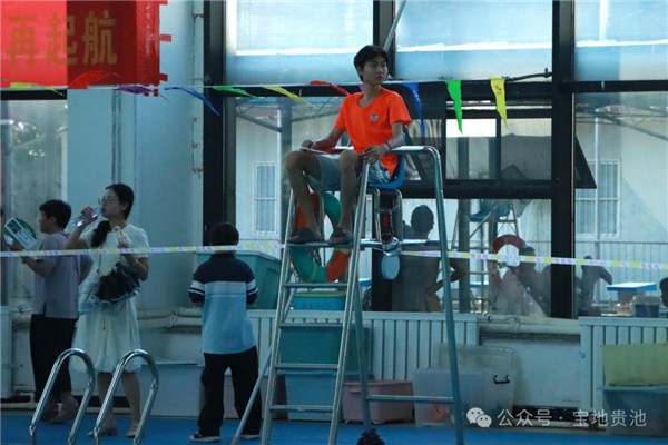 環(huán)顧現(xiàn)場,記者還發(fā)現(xiàn)了另一道風景線:裁判們或拿著手冊,或握著秒表嚴陣以待;醫(yī)療點處,醫(yī)生和護士們隨時準備起跑,桌上的醫(yī)藥箱里擺滿了藿香正氣液等醫(yī)療物資;泳池兩旁,穿著橙紅色救生衣的救生員視線緊隨選手們的動作;警戒線外是家長、老師和同伴的加油聲,終點的掌聲比成績更響亮。