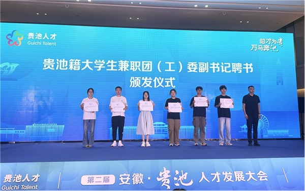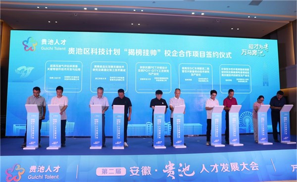 活動(dòng)現(xiàn)場(chǎng),與會(huì)人員共同回顧了首屆大賽的精彩歷程,與會(huì)領(lǐng)導(dǎo)手觸大屏,共同啟動(dòng)第二屆賽事。大會(huì)現(xiàn)場(chǎng)發(fā)布了“尋找貴池鄉(xiāng)土人才”活動(dòng),大家共同觀看了宣傳片《你好,鄉(xiāng)村“守”藝人》?,F(xiàn)場(chǎng)舉辦了貴池區(qū)科技計(jì)劃“揭榜掛帥”校企合作項(xiàng)目簽約儀式,5對(duì)校企代表現(xiàn)場(chǎng)簽約,共同推動(dòng)科技成果轉(zhuǎn)化。為厚植桑梓情懷,會(huì)上還為6名貴池籍大學(xué)生兼職團(tuán)(工)委副書(shū)記頒發(fā)聘書(shū)。